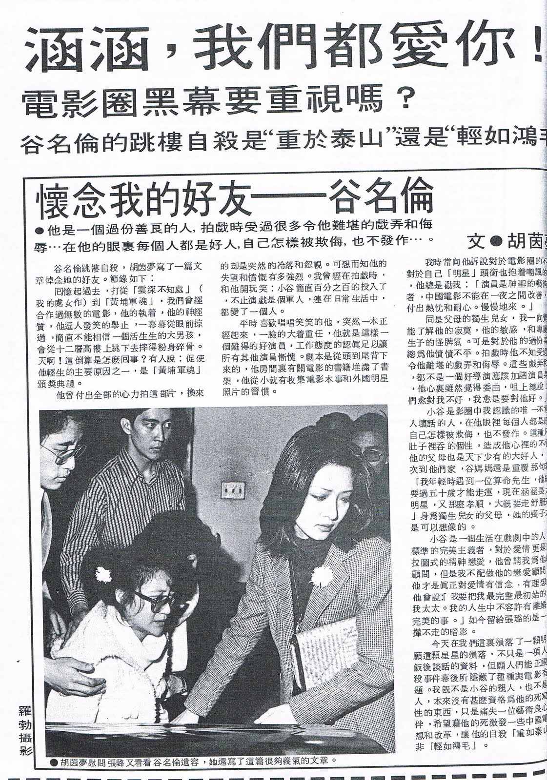 谷名倫的生前好友胡茵夢,在谷名倫自殺後,也寫出一篇懷念文章,為谷名倫作最後道別。